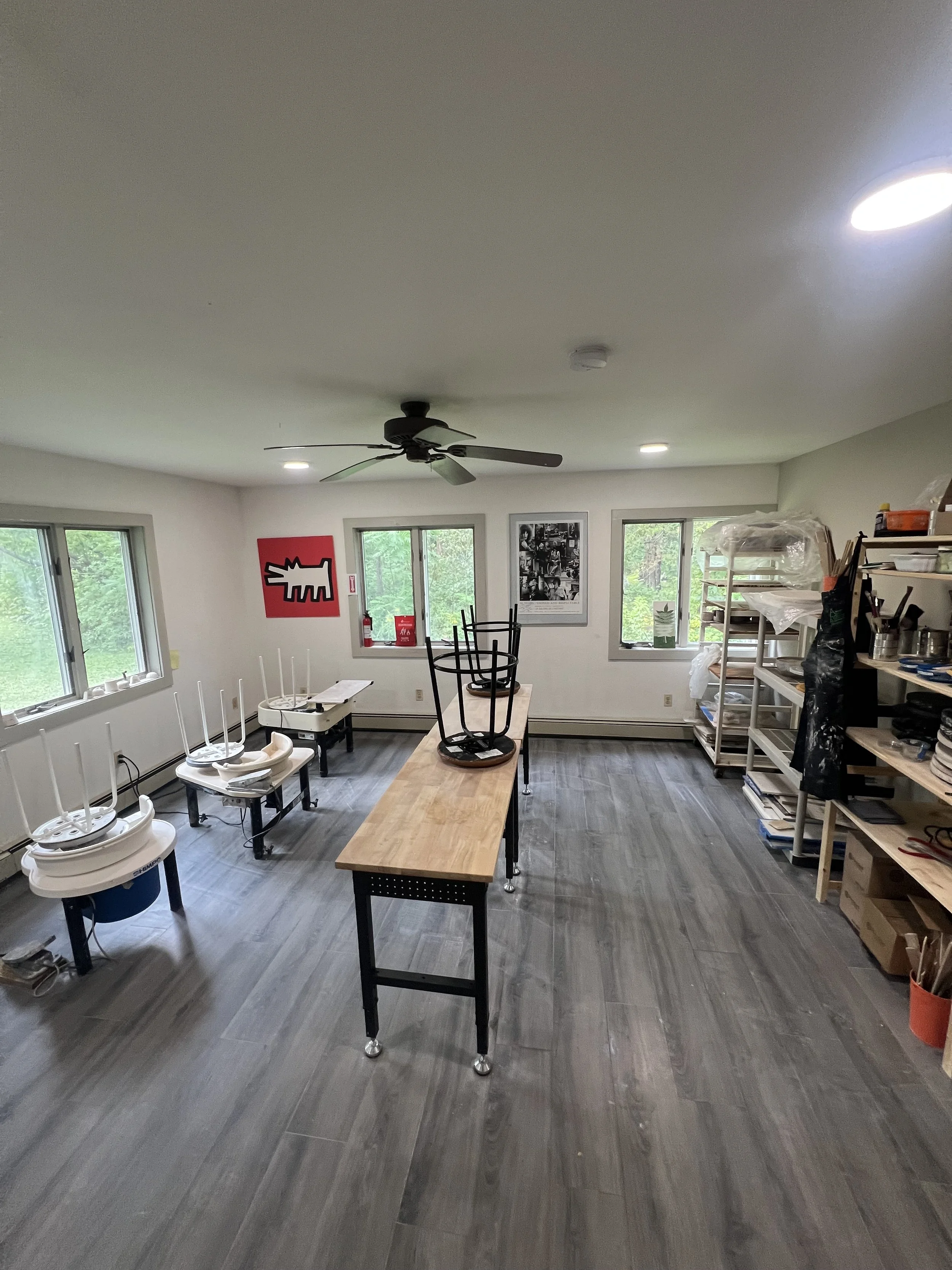 Your class fee includes an 8-week program with one two-hour class each week plus 4 hours of open studio time. The first session provides everything you need to get started: clay, glazes, and tools. A small firing fee of $0.06 per cubic inch applies for bisque and glaze firings.